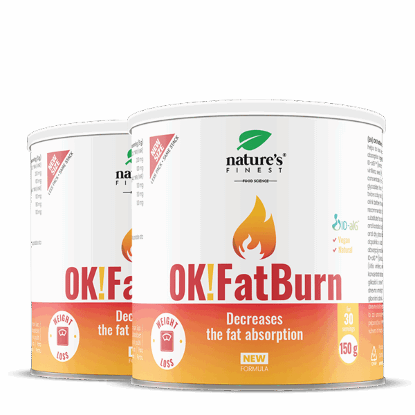OK!Fatburn е ефективна формула за отслабване, която инхибира ензимите за храносмилане на въглехидратите и мазнините с помощта на ID-alG™. Тройният ефект на формулата допринася за нормалния метаболизъм, който произвежда енергия⁴ с допълнителна сила на L-тирозин и L-карнитин. Изследванията потвърдиха забележимо отслабване, свързано с намаляване на мастната маса.¹